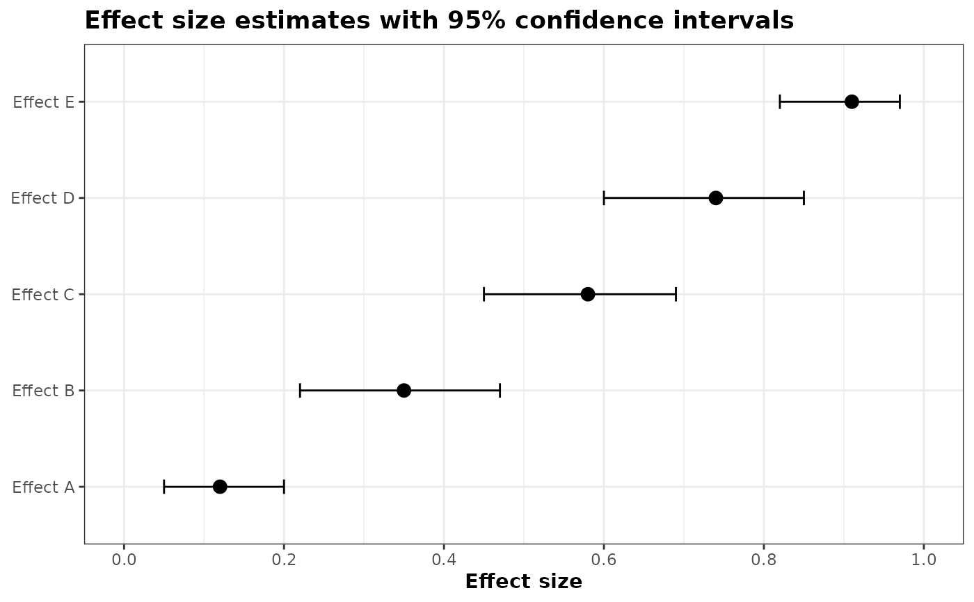 Plot effect-size estimates and confidence intervals. All values must be between 0 and 1.
